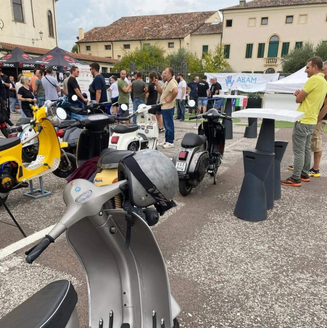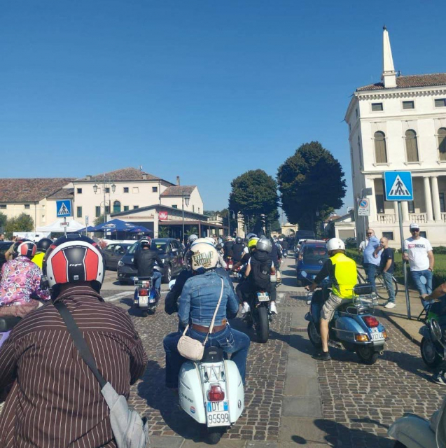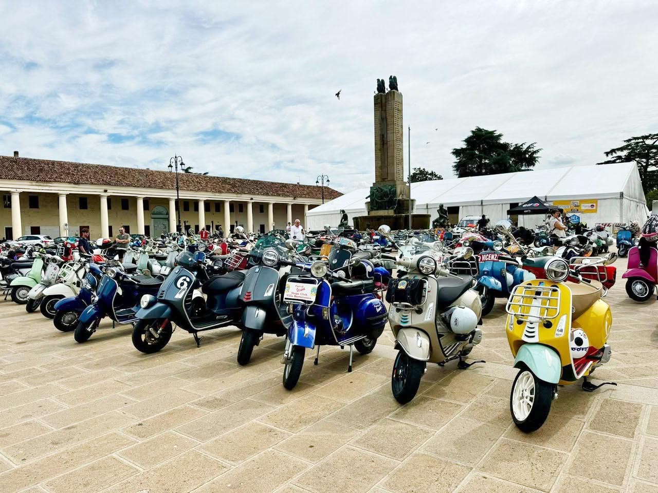 Oltre 350 Vespe hanno colorato le strade e la piazza: autentici gioielli simbolo di libertà e amicizia, tra cui la mitica Vespa 50 Special conservata messa in palio per la lotteria solidale.